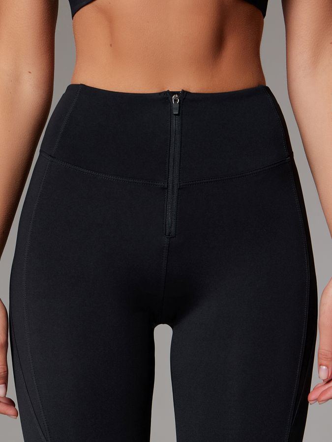 NEVERLATE Леггинсы с молнией спереди и вставками из сетки черные NW04.907.2