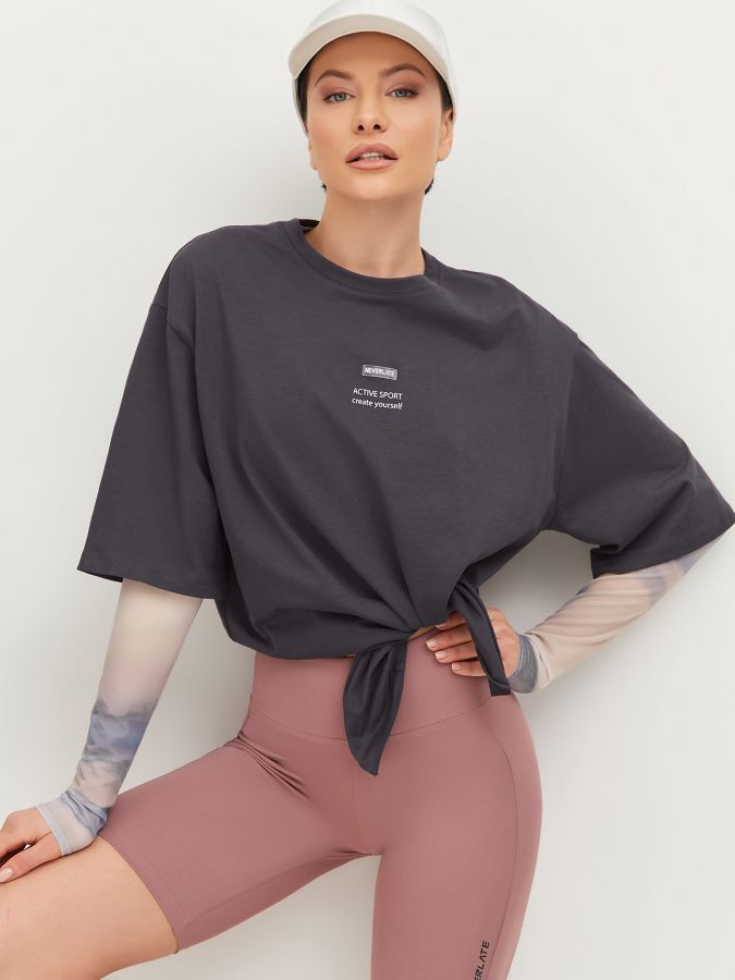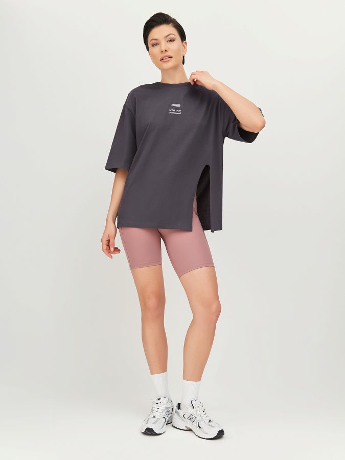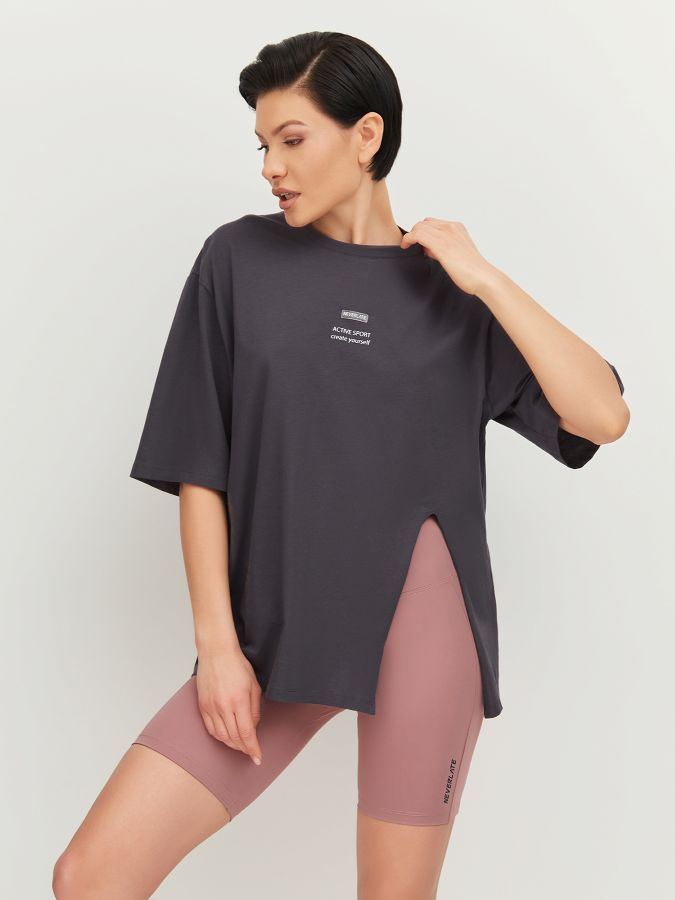 NEVERLATE Футболка прямого силуэта с разрезом спереди графит NW09.901.2